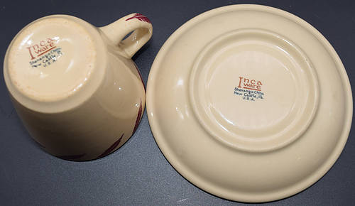 Lot: 164  Description: WP FEATHER RIVER - coffee cup & saucer top marked and both manufactured by Shenango. Nice set always desirable in good used condition.