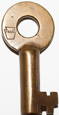 Lot: 268 Description: H&TCRR - (Houston & Texas Central) serif letters on brass switch key manufactured by Fraim. Dark patina and showing little use. Minimum bid: $20 Price Realized: $80 |
