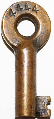 Lot: 269  Description: I&GNRY - (International & Great Northern) block letters on brass switch key with serial No. 4444 on reverse. No manufacturers marks shown. Dark patina and even wear.