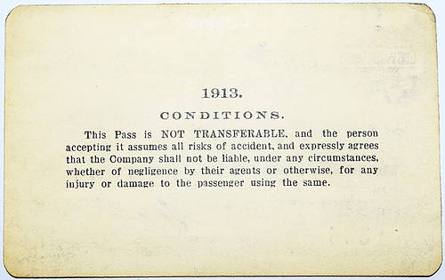 Lot: 456 Description: MANITOU & PIKES PEAK R'Y CO COG WHEEL ROUTE - 1913 annual pass No. A336 issued to Mr. H.P. Greenough Supt. El Paso Div., R.I. Lines. Black on red tan with red highlights. Good used condition. Minimum bid: $30 Price Realized: $110 |