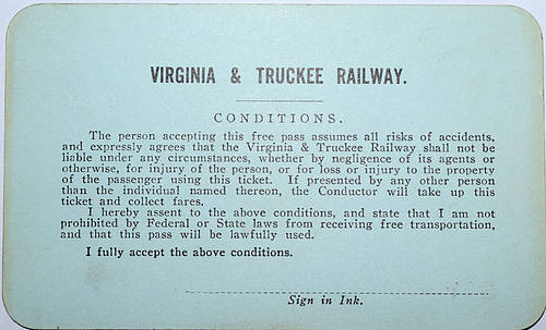 VIRGINIA & TRUCKEE RAILWAY PASS