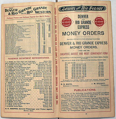 Lot: 485 Description: DENVER &RIO GRANDE & RIO GRANDE WESTERN - February 1902 Time table brochure with 40 pages of advertising and schedules in ready to display condition. Always a pleasure to find one showing gentle use. Minimum bid: $40 Price Realized: $40 |