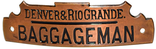 Lot: 30 Description: DENVER & RIO GRANDE BAGGAGEMAN -Black enameled lettering on brass, crown style badge with holes on each side for brad attachment. Manufacturer's mark on reverse shows AM.RY.S.Co in arch over NY. Enamel is in good condition. A rare and seldom offered badge that should get a lot of attention. Minimum bid: $200 Price Realized: $550 |