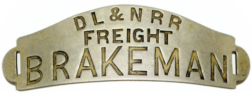Lot: 33 Description: DL&NRR FREIGHT BRAKEMAN- (Denver Laramie & Northern) predecessor of the Great Western, black enameled lettering on nickel plated, dome style badge with slotted ends. Enamel is worn and no manufacturer's mark shown. Still very acceptable condition and again a harder occupation to find. This is another rare badge sure to please the lucky new owner. Minimum bid: $150 Price Realized: $1,050 |