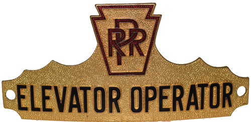 Lot: 39 Description: PRR ELEVATOR OPERATOR (Pennsylvania) brass pebbled finish cap badge with holes on either side for brad attachment. Hallmarked, "The Wallace Co. Prov. RI". Another scarce badge in excellent condition from the Pinkham estate. Minimum bid: $100 Price Realized: $120 |
