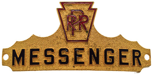 Lot: 40 Description: PRR MESSENGER - (Pennsylvania) brass pebbled finish cap badge with holes on either side for brad attachment. Hallmarked EBY Co. Philadelphia. Good used condition. Minimum bid: $75 Price Realized: $80 |
