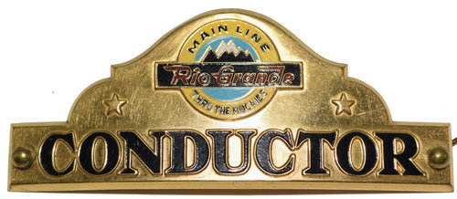 Lot: 46 Description: RIO GRANDE CONDUCTOR - pressed brass high domed cap badge with holes on either side for brad attachment. Colorful enameled Main Line Thru the Rockies logo over black enameled Conductor. Nice condition. Minimum bid: $75 Price Realized: $260 |