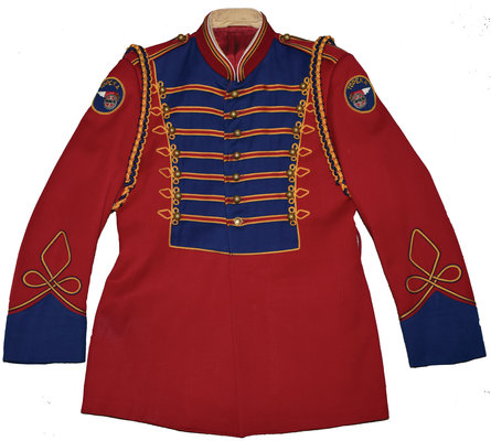 Lot: 50 Description: SANTA FE BAND UNIFORM - Complete uniform includes, hat, coat, shirt, pants, bow tie and all the trim. Beautiful condition with enameled badge on the hat. Coat is size 34 and manufactured by Ostwald Uniform Company. White cotton short sleeve shirt is size 16 1/2" with blue stenciled Topeka Band logo on the back of the shirt with small stain on the front. Otherwise this is complete and includes one extra gold button. The hat is size 16 3/4" with white patent leather visor and gold trim. These uniforms are a wonderful historic reminder of a time long gone. A chance to add a great addition to your collection. Minimum bid: $200 Price Realized: $2,600 |