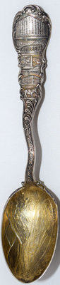 Lot: 8 Description: GEORGETOWN LOOP SPOON - Sterling Silver souvenir spoon featuring Georgetown Loop in the gold-washed bowl. Front handle design shows "DENVER" with various iconic landmarks such as the Brown Palace Hotel and the Denver Mint. Minimum bid: $30 Price Realized: $60 |