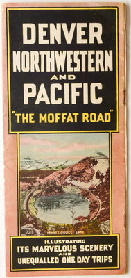 Lot: 429 Description: DNW&P BROCHURE – Denver Northwestern & Pacific travel brochure dated March 1913 with photos and descriptions of scenes along the line. Center fold has small tears otherwise nice. Minimum bid: $20 Price Realized: $220 |