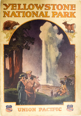 Lot: 448 Description: UNION PACIFIC BROCHURE – 1922 souvenir travel booklet titled, “Yellowstone National Park with 32 pages of photos with descriptions of scenes along the line. Foxing on the cover but otherwise nice. Minimum bid: $20 Price Realized: $50 |