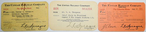 Lot: 489 Description: UINTAH RY PASSES – includes 1924 issued to Division Engineer Foster Morse, stained; 1925 issued to J.G. Griffin, Wife of Machinist nice condition and 1926 T.A. Thompson Chief Clerk D&RGW. Ready to display. Minimum bid: $40 Price Realized: $420 |